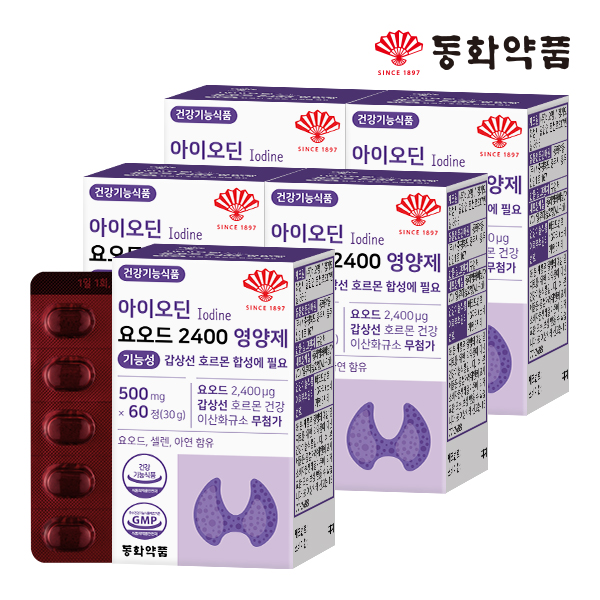 - 동화약품 아이오딘 요오드 2400 영양제 기능성 갑상선 호르몬 합성에 필요 5박스 (300정)