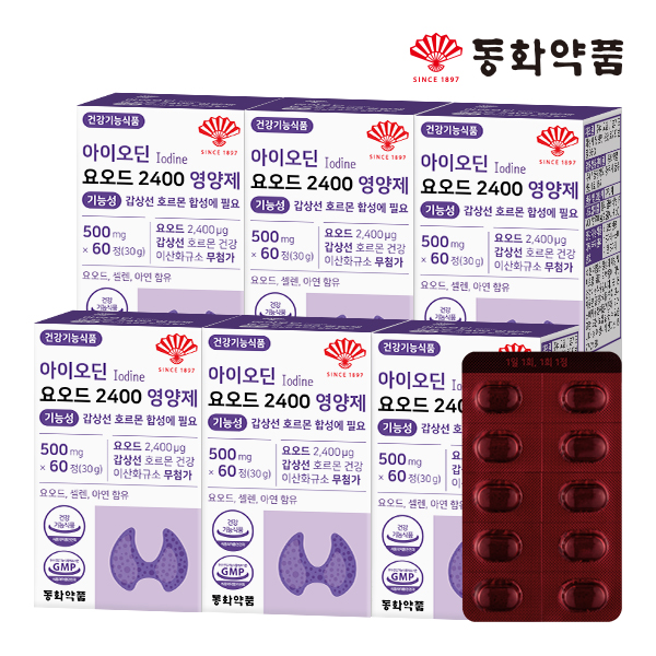 - 동화약품 아이오딘 요오드 2400 영양제 기능성 갑상선 호르몬 합성에 필요 6박스 (360정)