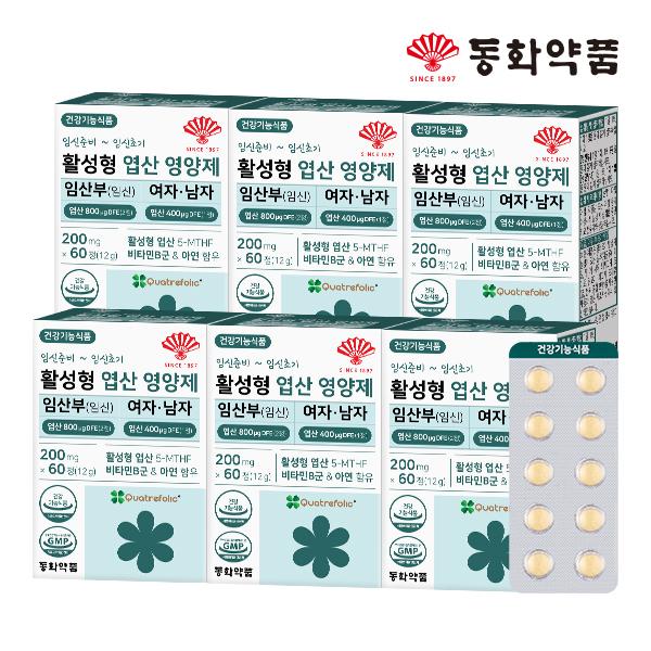 - 동화약품 활성형 엽산 영양제 임산부 임신 여자 남자 5박스 (300정)