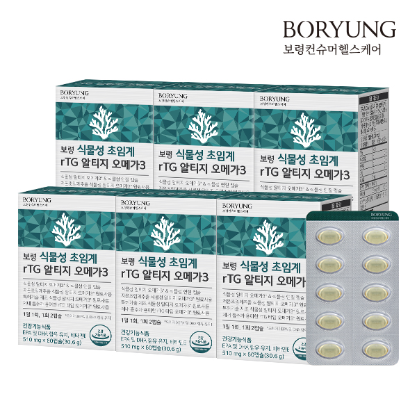 - 보령 식물성 초임계 rTG 알티지 오메가3 6박스 (360캡슐)
