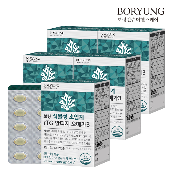 - [4+1] 보령 식물성 초임계 rTG 알티지 오메가3 5박스 (300캡슐)
