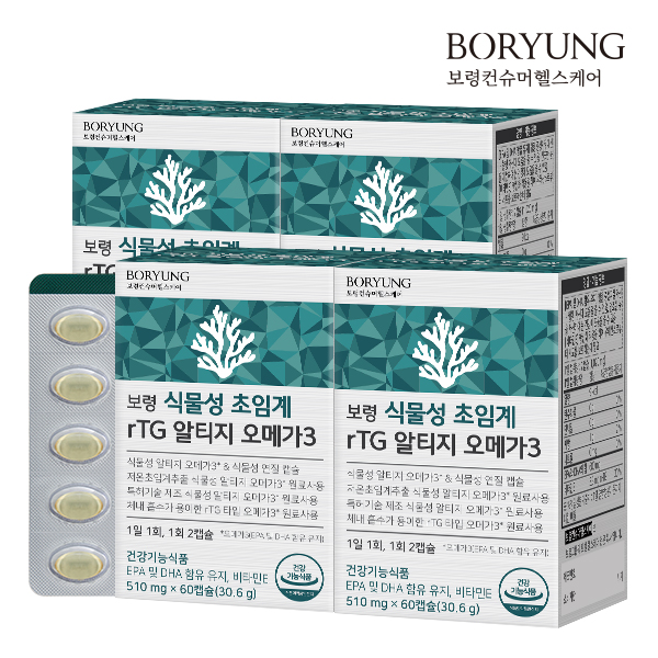 - 보령 식물성 초임계 rTG 알티지 오메가3 4박스 (240캡슐)