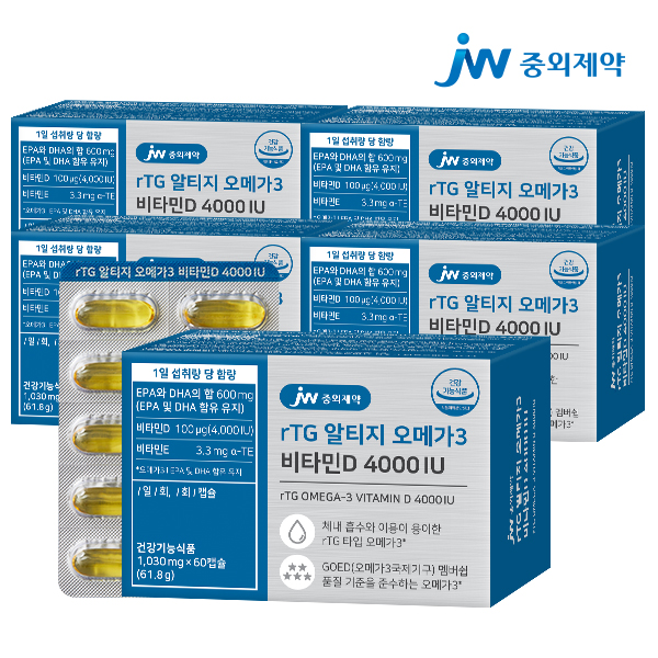 - JW중외제약 rTG 알티지 오메가3 비타민D 4000IU 5박스 (300캡슐)
