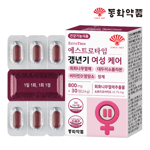 - 동화약품 에스트로타임 갱년기 여성 케어 회화나무열매 대두이소플라본 비타민D 영양소 정제 1박스 (30정)